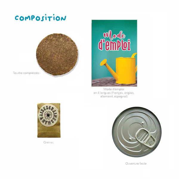 Dans la boîte, un kit prêt à semer. Pas besoin d’être jardinier : un peu d’eau, un peu de soleil… et les graines finissent par pousser.