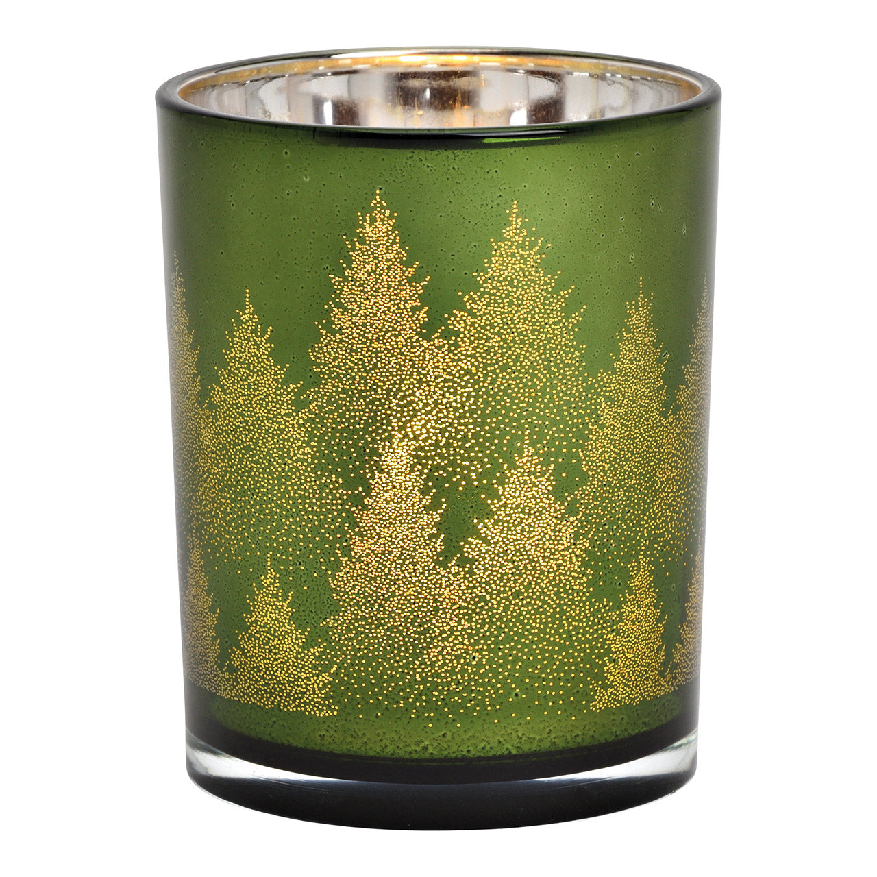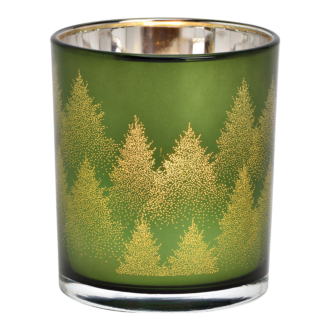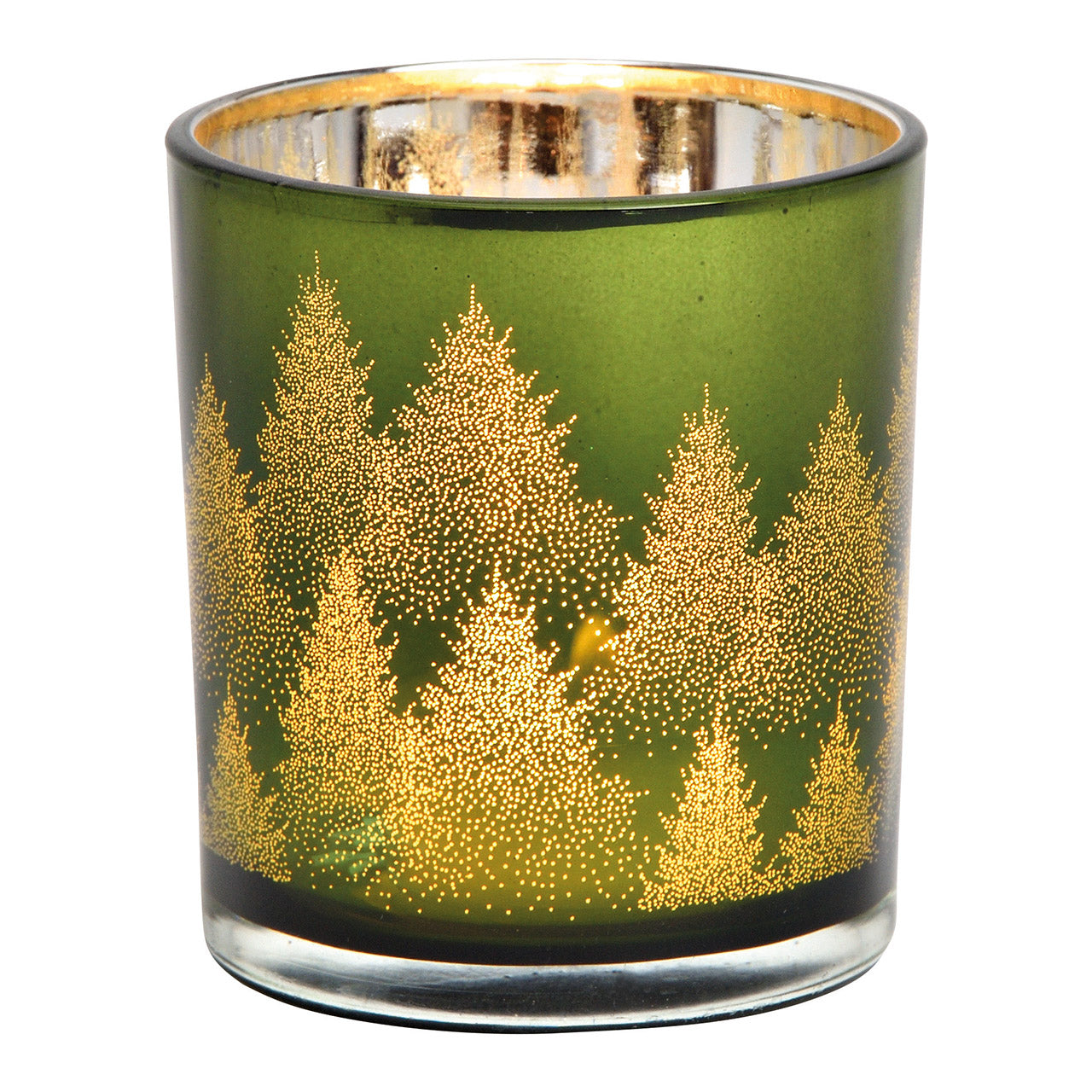 Photophore en verre vert, décor forêt d'hiver • Disponible en trois dimensions.