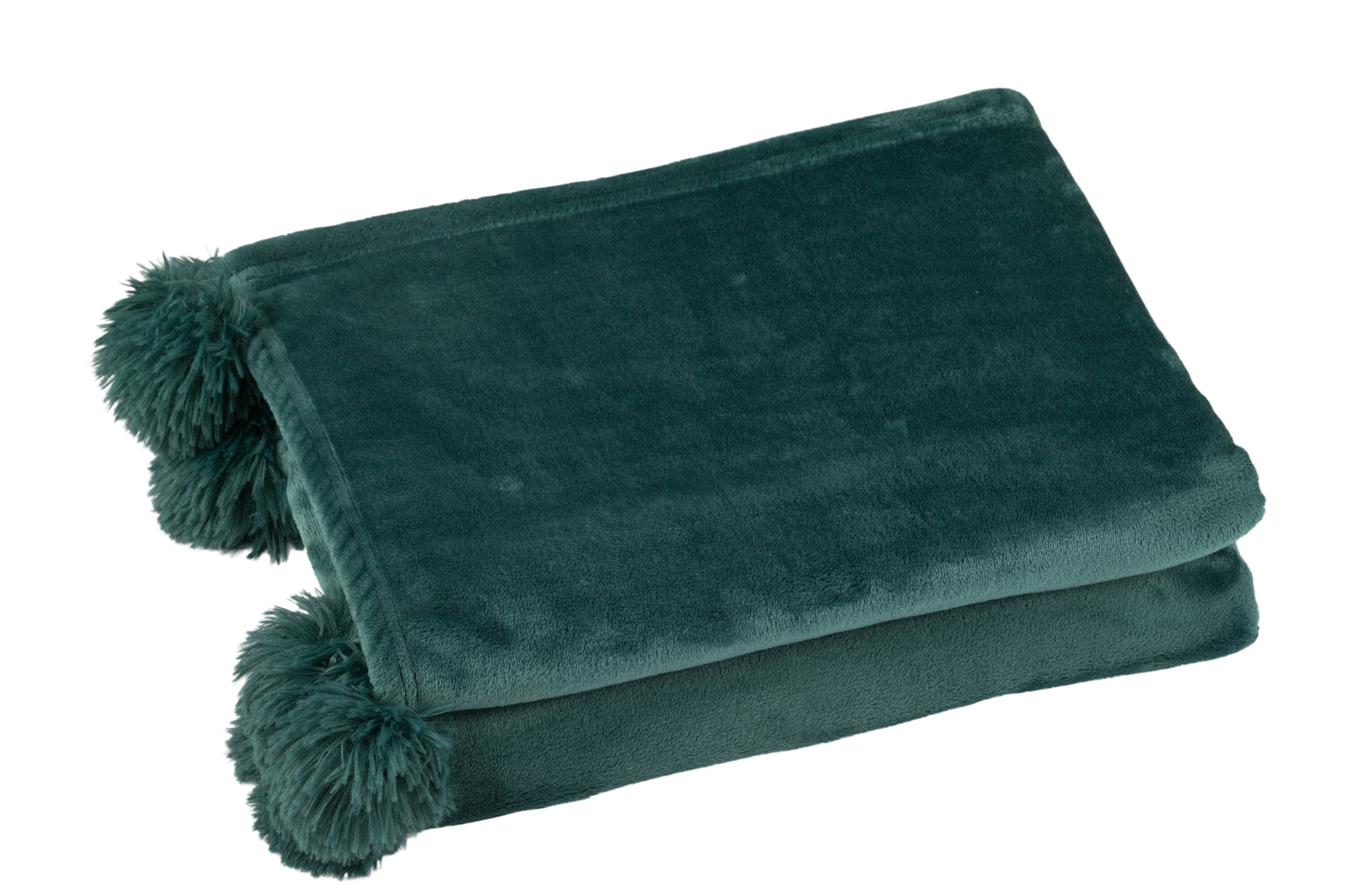J-Line • Plaid pompon en polyester vert foncé • 170x130x1cm