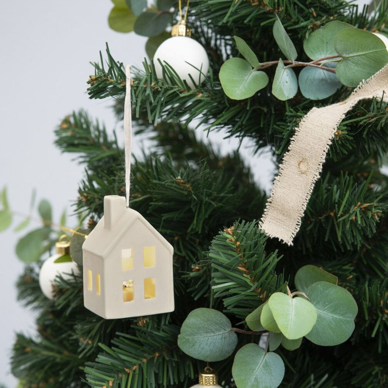 Suspension maison lumineuse LED en porcelaine • 6x9x4cm